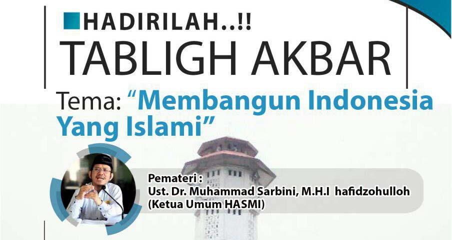 Hadirilah Tabligh Akbar HASMI Himpunan Ahlussunnah untuk Masyarakat Islami Dengan Tema “Membangun Indonesia Yang Islami” Dengan Pemateri: Ust. Dr. Muhammad Sarbini, M.H.I (Ketua Umum HASMI) Acara akan dilaksanakan pada: Ahad, 19 November 2017 Pukul 08.30 – 11.30 WIB Bertempat: Masjid Nurul Islam Islamic Center Kota Bekasi (Jl. Jendral Ahmad Yani No. 22 – Exit Toll Bekasi Barat) Acara ini Gratis..!! …