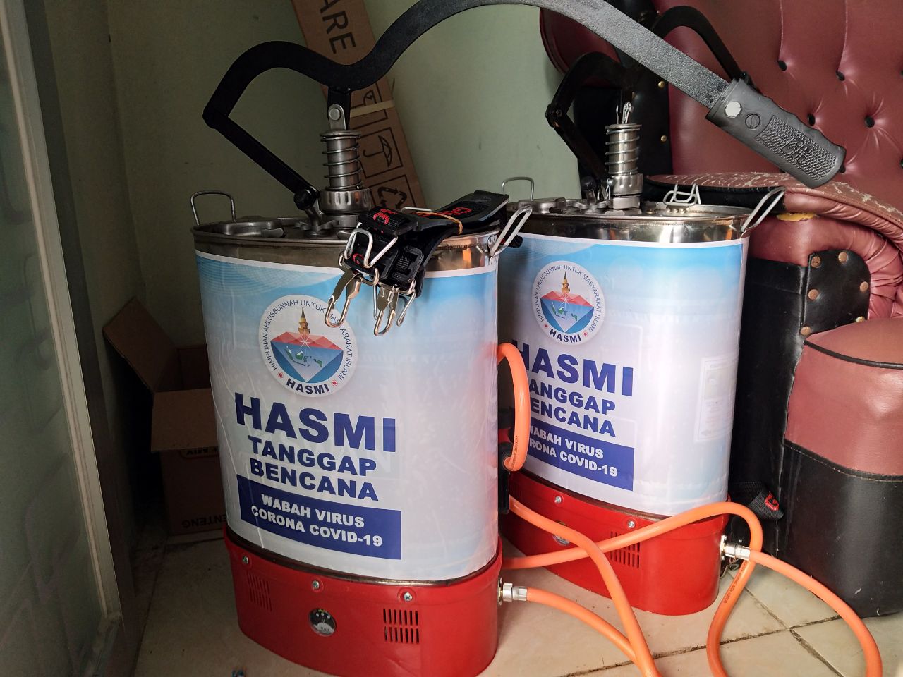 Ahad 29 Maret 2020 Team Hasmi Peduli yang dikomandoi Ust Dwi Umar telah melakukan penyemperotan cairan Desinfektan  di pemukiman Warga.