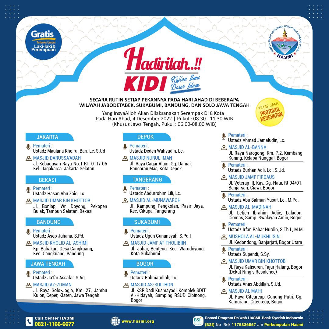 Pada Hari Ahad, 4 Desember 2022, Pukul : 08.30 – 11.30 WIB (Khusus Jawa Tengah, Pukul : 06.00 – 08.00 WIB)
