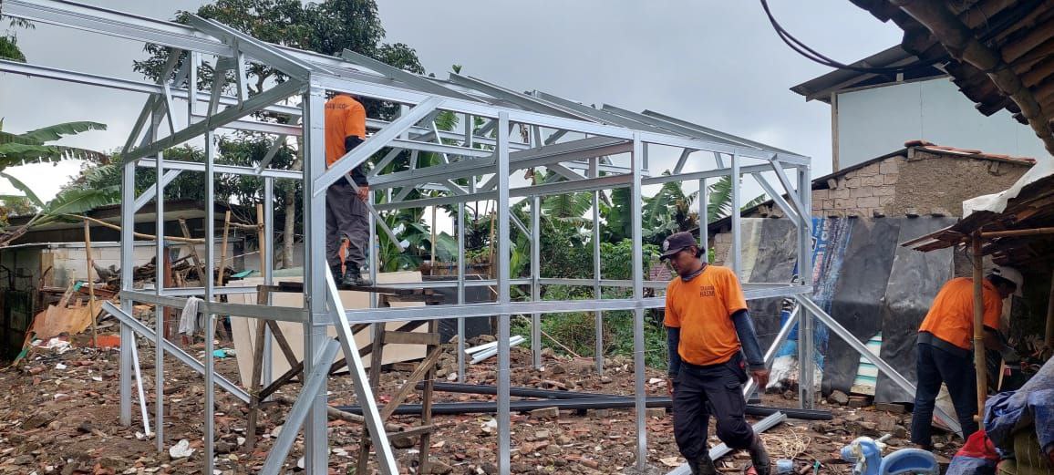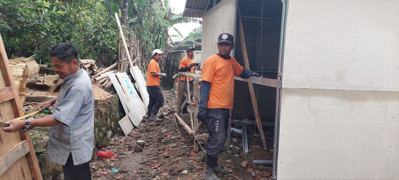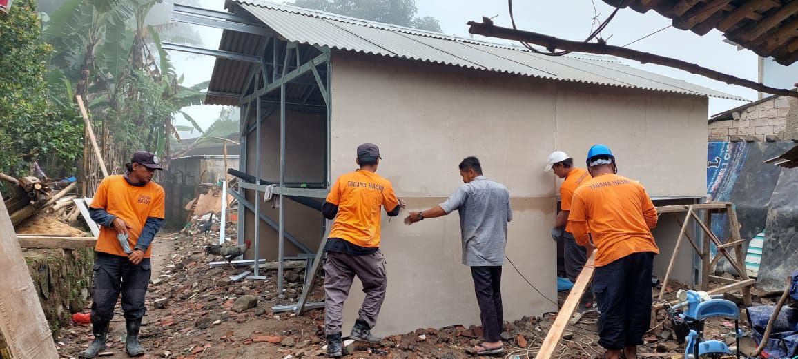 SEDANG BERLANGSUNG PEMBANGUNAN HUNTARA (Rumah Hunian Semantara) Untuk korban cianjur oleh Hasmi Peduli