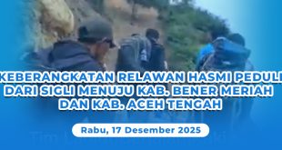 KEBERANGKATAN RELAWAN HASMI PEDULI DARI SIGLI MENUJU KAB. BENER MERIAH DAN KAB. ACEH TENGAH Oleh: Tim Redaksi HASMI Tim distribusi bantuan HASMI Peduli telah diberangkatkan dari Sigli menuju wilayah terdampak bencana di Kabupaten Bener Meriah dan Kabupaten Aceh Tengah. Jazakallahu khoir atas dukungan masyarakat yang peduli meringankan beban korban bencana. Semoga apa yang kita keluarkan menjadi syafaat untuk kita semua …