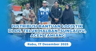 DISTRIBUSI BANTUAN LOGISTIK DI DS. TELUK HALBAN, SUNGAI YU, ACEH TAMIANG Oleh: Tim Redaksi HASMI Rabu, 17 Desember 2025. Distribusi di Desa Teluk Halban, Sungaiyu. Logistik yang dibutuhkan, perjalanan ke pelosok, menggunakan becak badai roda 3. Bantuan telah disalurkan melalui Hasmi Peduli untuk saudara-saudara kita yang terdampak musibah. Jazakallahu khoir atas dukungan masyarakat yang peduli meringankan beban korban bencana. Semoga …