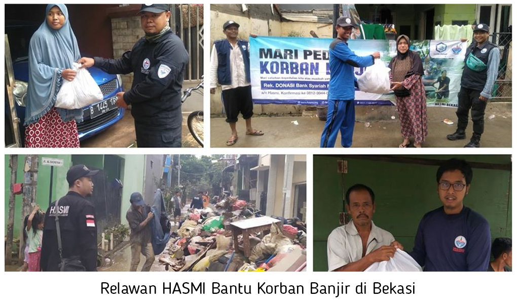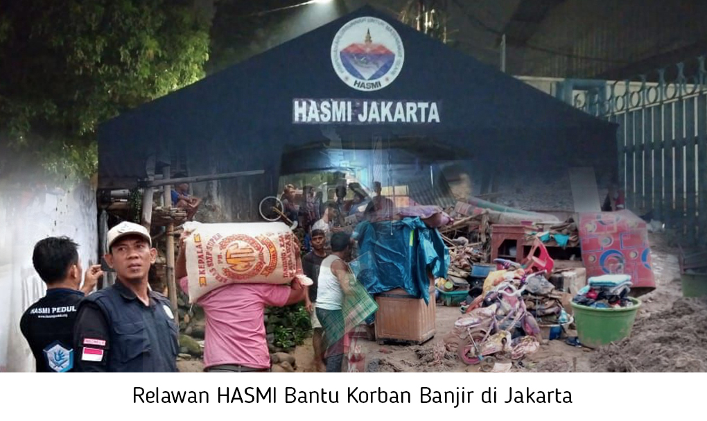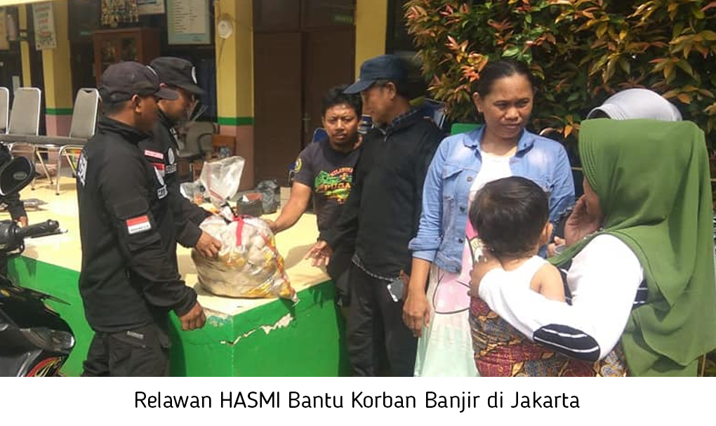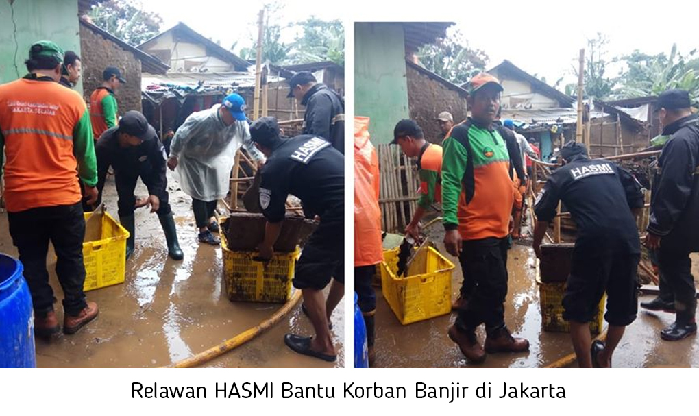 Terhitung sejak hari pertama bencana melanda, sebanyak 150-an Relawan HASMI diturunkan di wilayah Jakarta, Bogor, dan Bekasi. Mereka membantu mengevakuasi warga, menyalurkan bantuan, mendirikan tenda-tenda darurat, mendirikan MCK darurat, menyiapkan makanan dan masih banyak bentuk-bentuk bantuan lainnya.