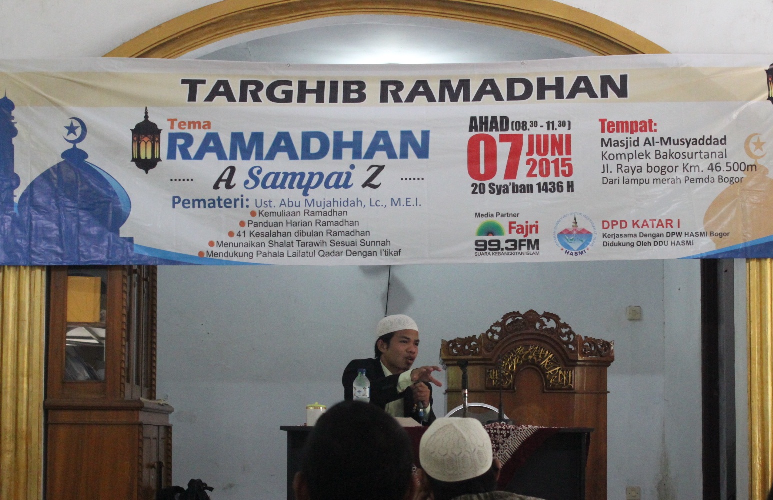 Bogor (www.hasmi.org) | Acara serentak Targhib Ramadhan HASMI di Jabodetabek & Bandung yang berlangsung maksimal sukses terlaksana pada Ahad 07/06/2015 lalu. Seluruh pemateri berhasil memaparkan materi secara intensif dan terarah. Seluruh audienz pun terlihat antusias mengikuti dengan khidmat kajian menyambut bulan Ramadhan tersebut.
