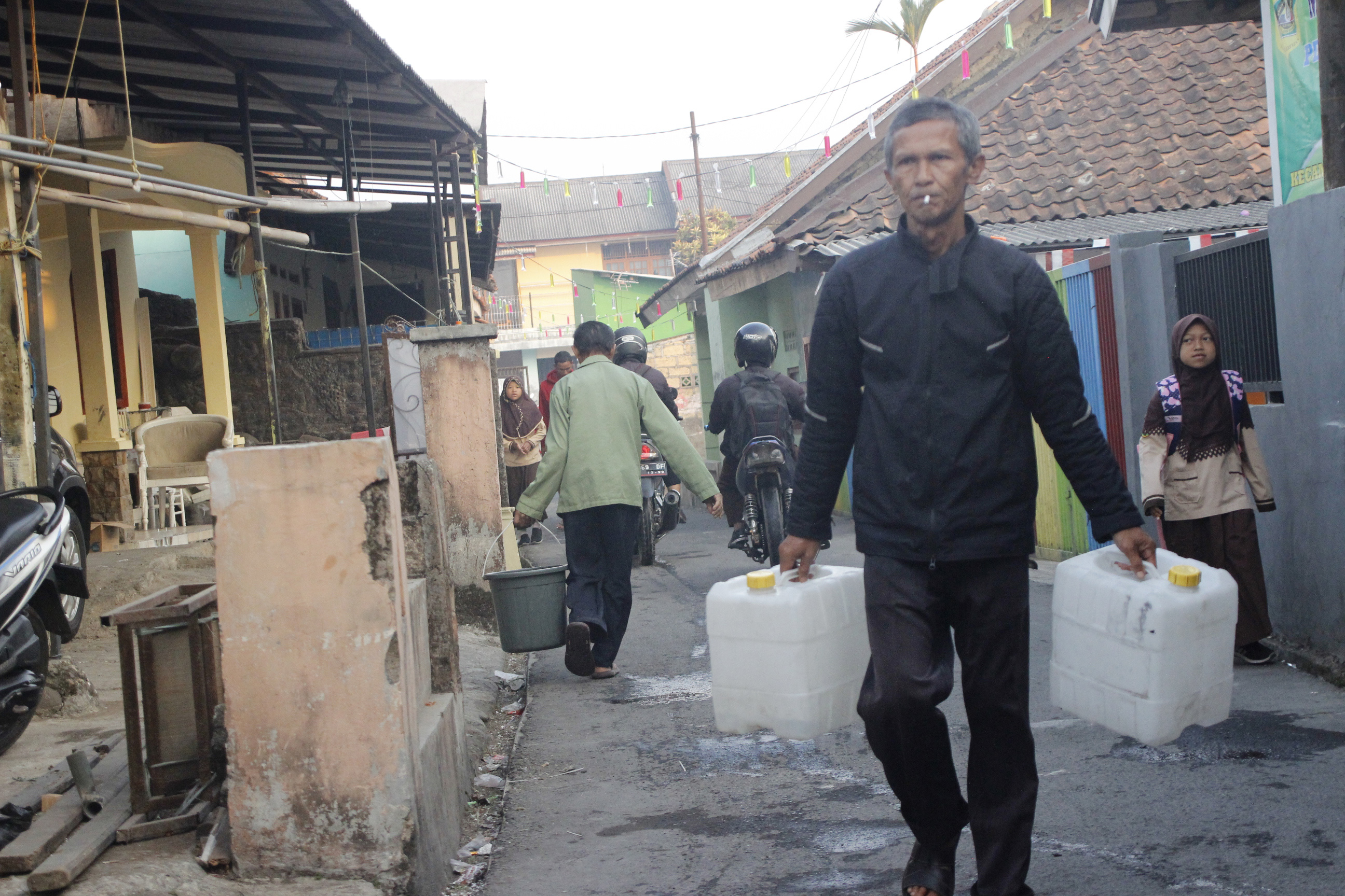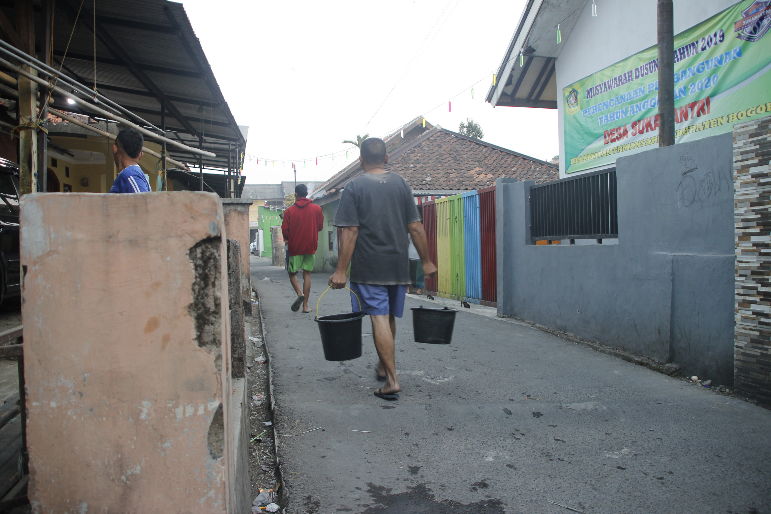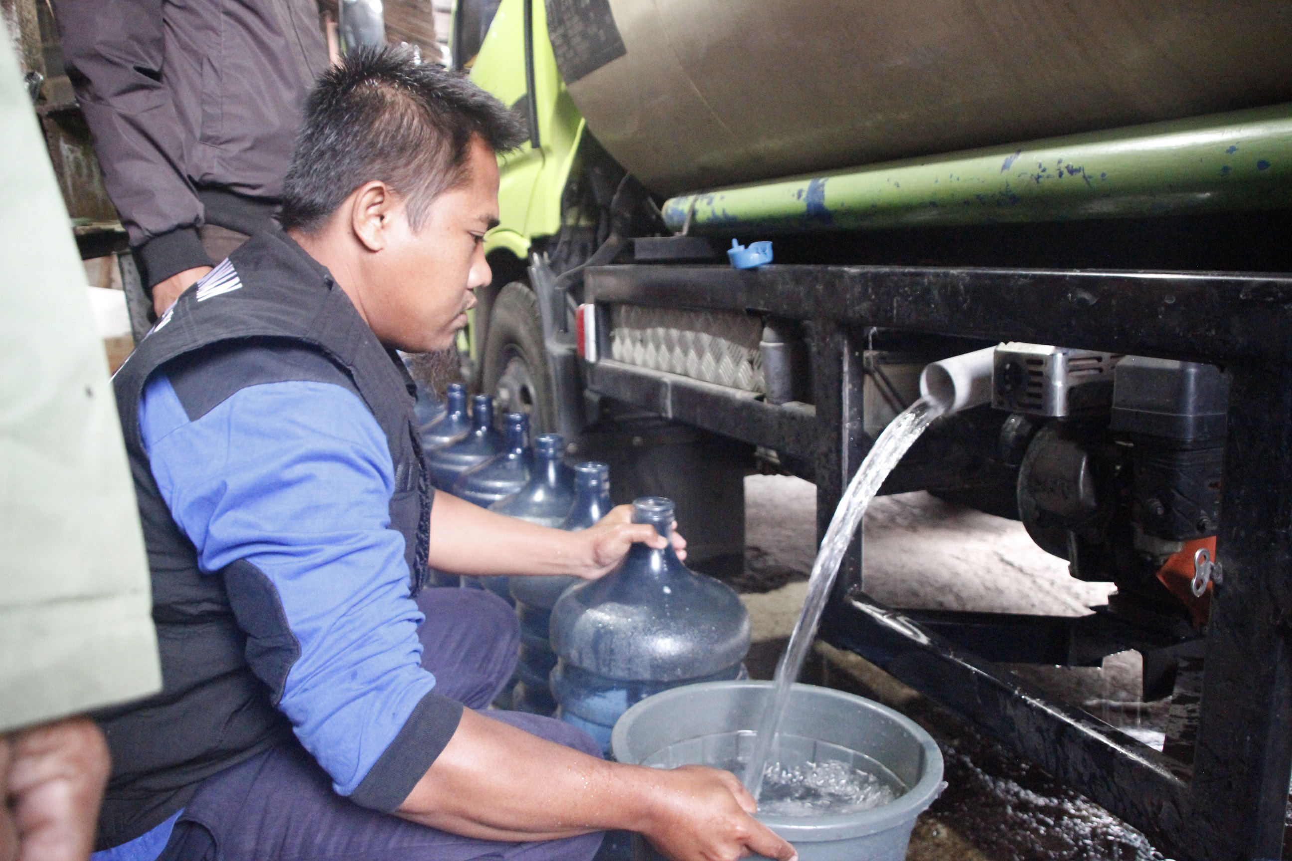 Sebagian warga ada yang bertahan dengan mengandalkan sisa-sisa air yang sudah mulai keruh dari sumur-sumur mereka dan adapula yang memilih untuk membeli air demi terpenuhinya kebutuhan mereka.