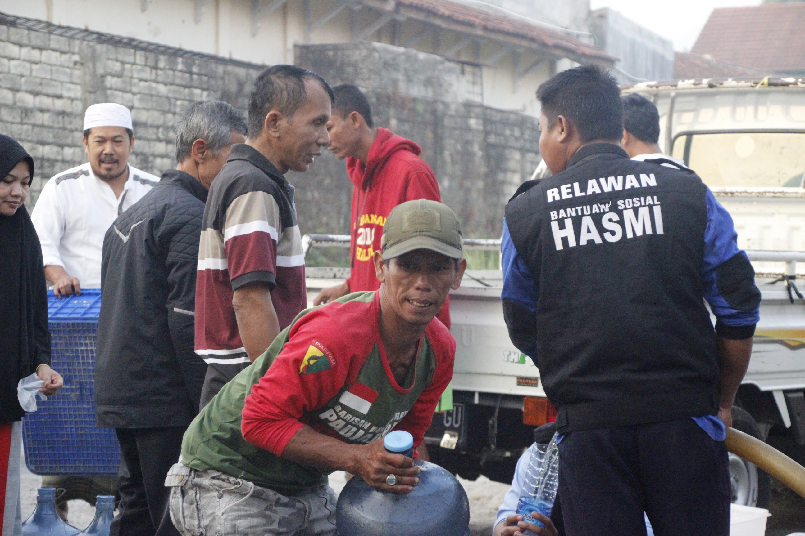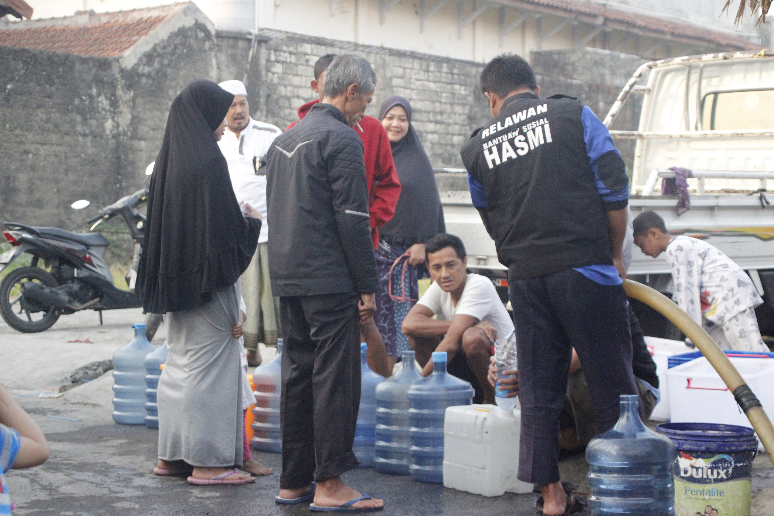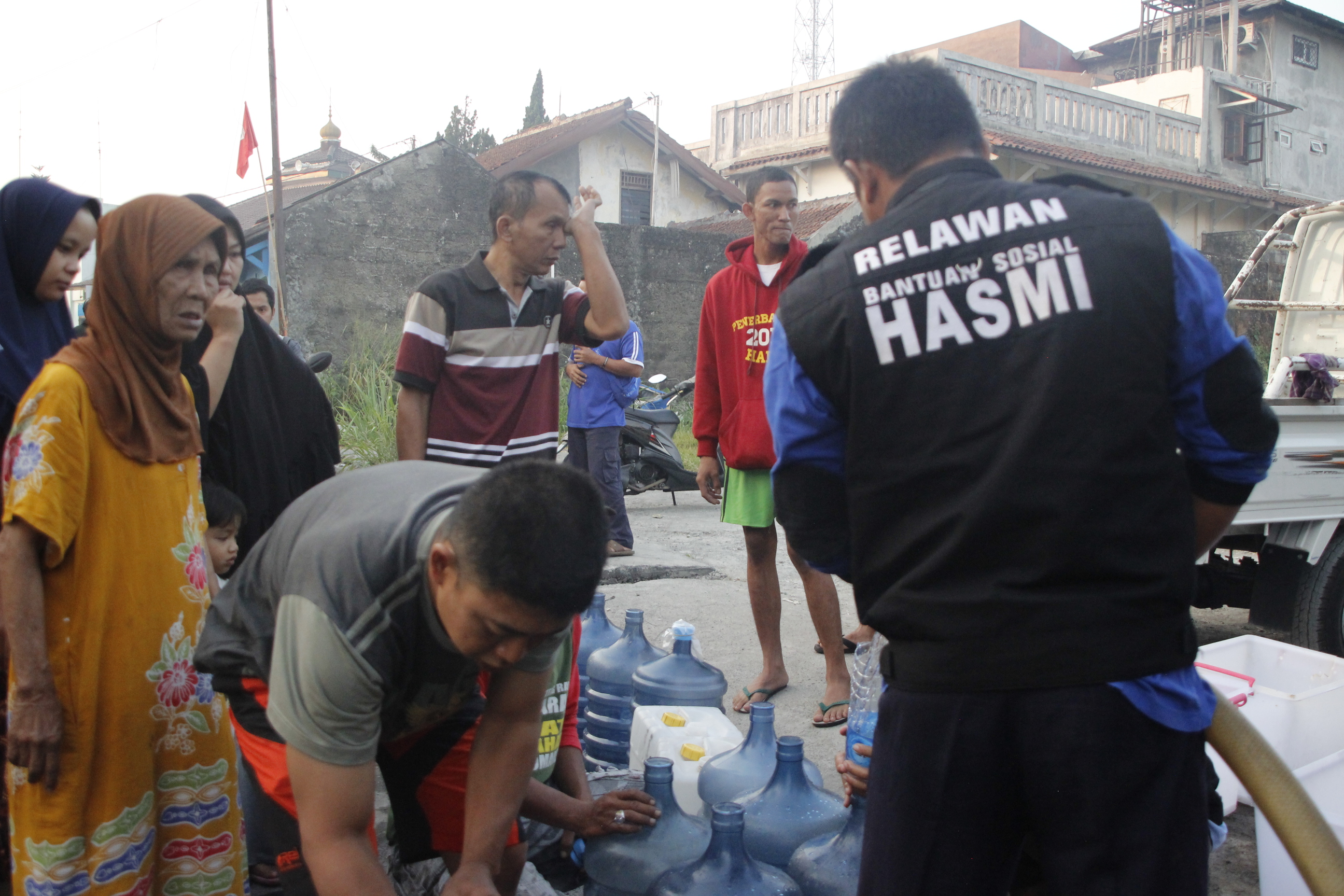 Tidak turunnya air hujan selama kurang lebih tiga bulan terakhir ini mengakibatkan surutnya air sumur di sekitaran wilayah kantor pusat HASMI yang menyebabkan warga kekurangan air bersih untuk kebutuhan hidupnya.