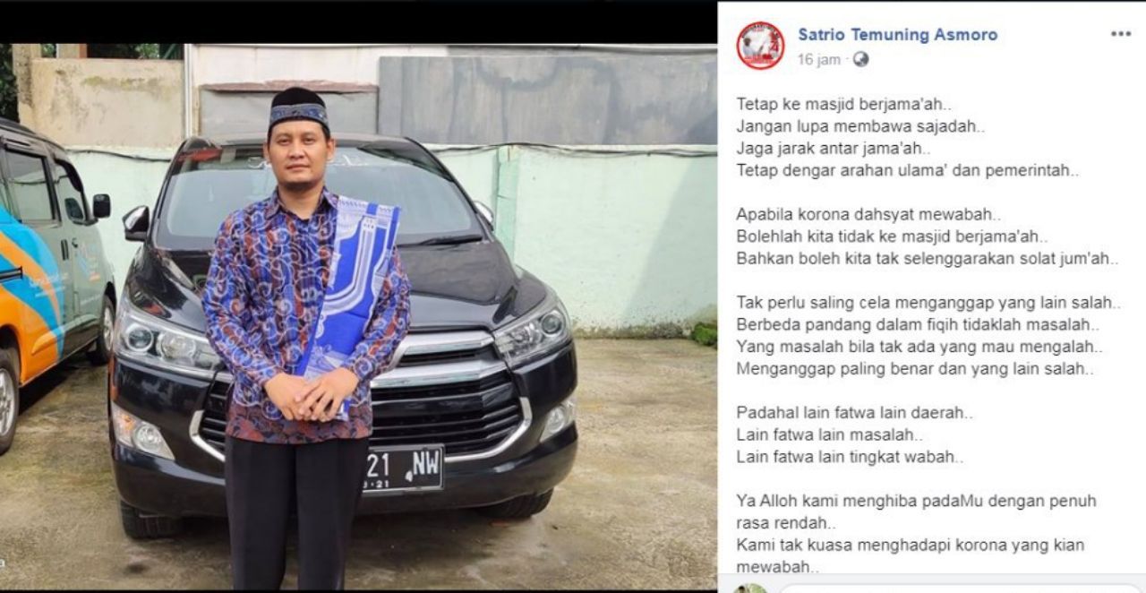 Ramai diskusi fatwa shalat berjamaah saat mewabahnya corona, ustadz Fatih sampaikan nasihat ini. BOGOR | 19 Maret 2019 Saat tersebarnya wabah virus corona di Indonesia, Majelis Ulama Indonesia mengeluarkan fatwa, salah satunya adalah untuk melaksanakan shalat di rumah, dan bolehnya mengganti shalat Jum’at dengan shalat zuhur di rumah. Fatwa tersebut ternyata banyak diperbincangkan di sosial media, banyak nettizen yang mendukung …