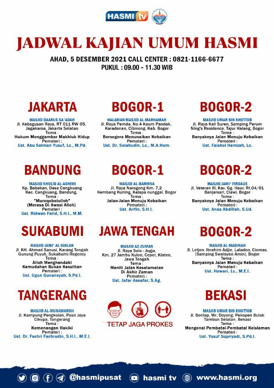 JADWAL KAJIAN UMUM HASMI Ahad, 5 Desember 2021 (1 Jumadil Awwal 1443 H)