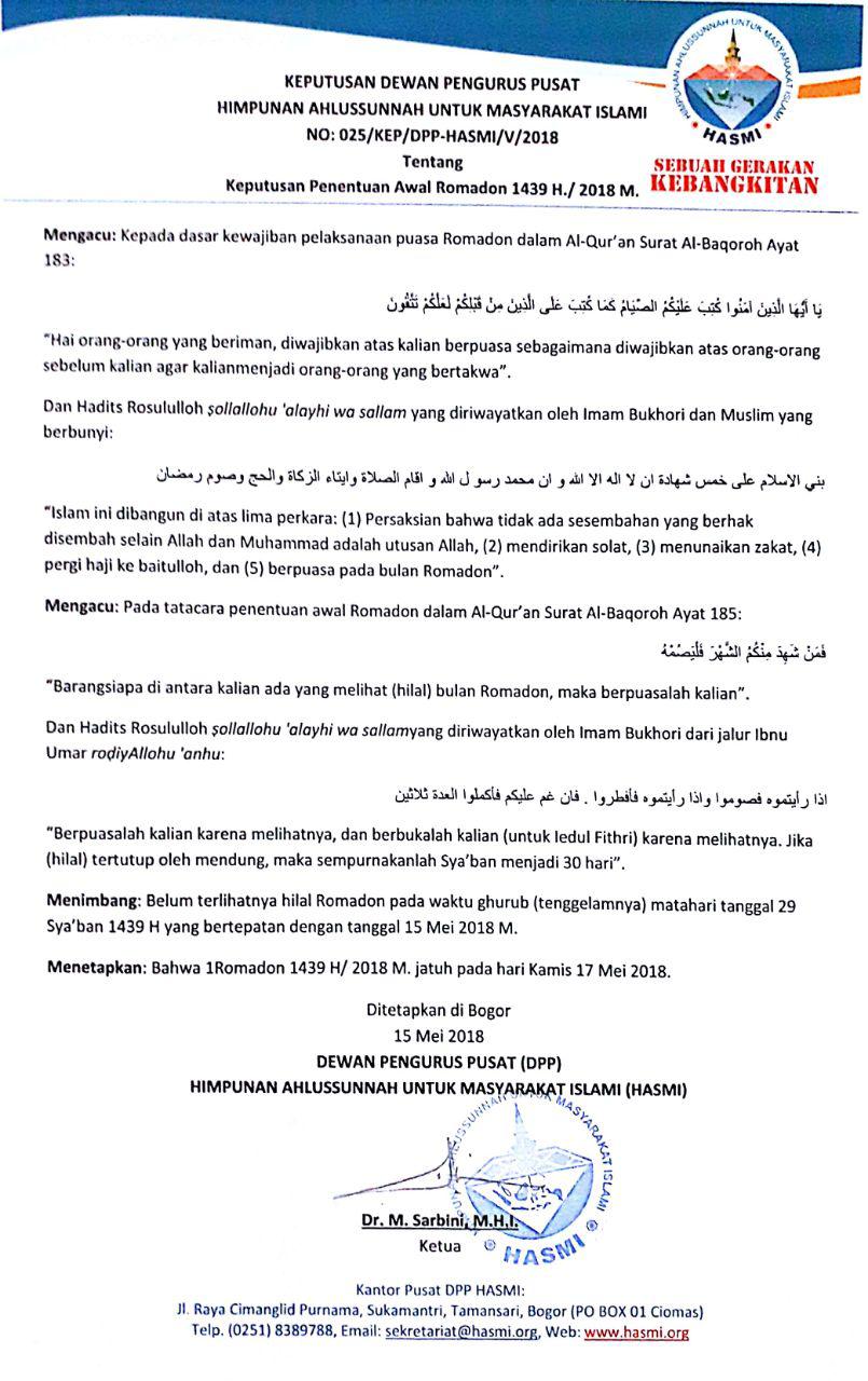 NO: 025/KEP/DPP-HASMI/V/2018
