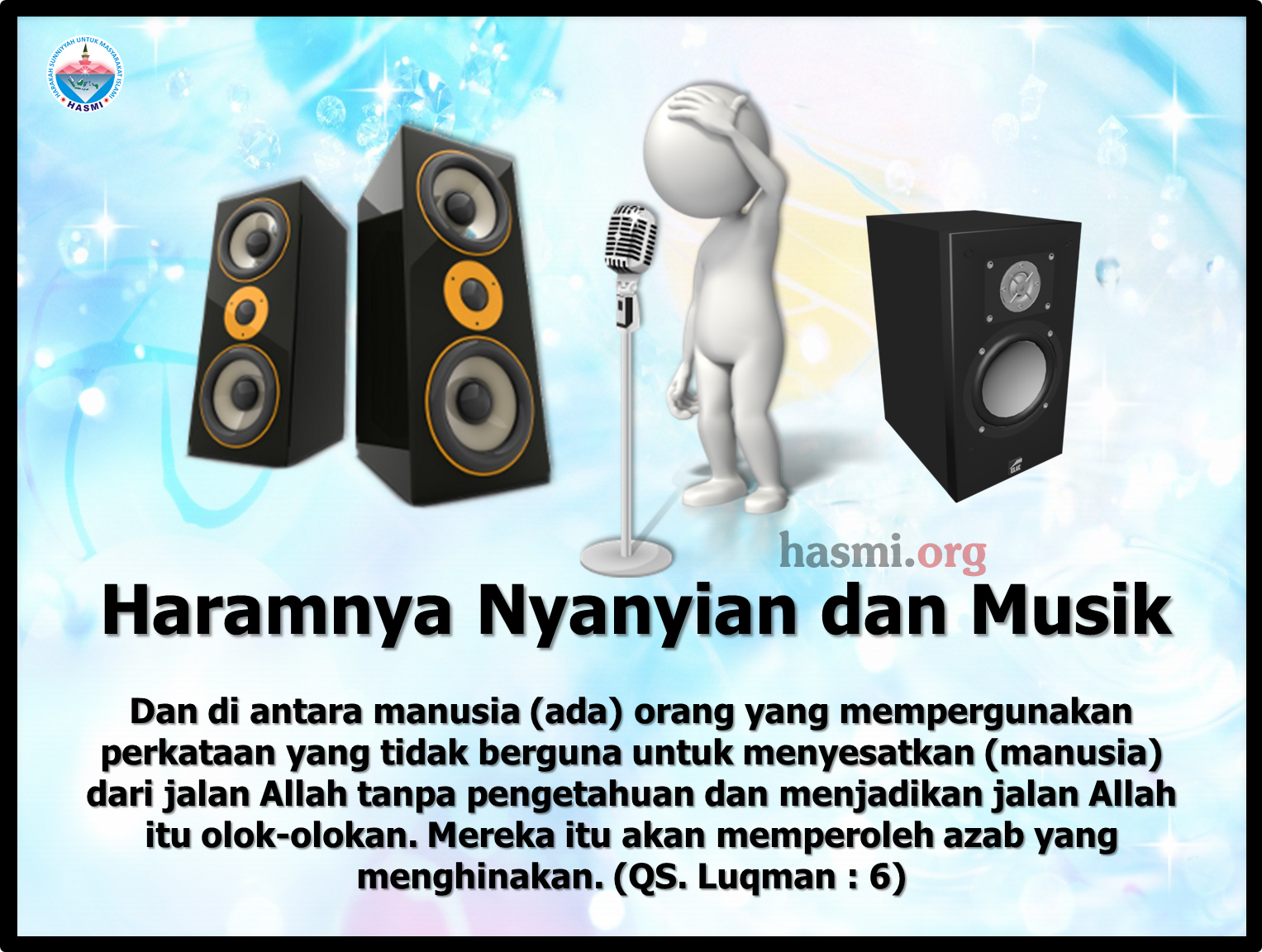 Pertanyaan: Apakah hukum musik? Imam Sukoharjo Jawaban: Alhamdulillah wasolatu wassalamu ala rosulillah amma ba’du. Para ulama Ahlussunnah telah melarang musik dengan mengacu pada beberapa dalil berikut ini, pertama yaitu firman All0h subhanahu wata’ala dalam surat Lukman [31] ayat 6, Alloh subhanahu wata’ala berfirman: وَمِنَ النَّاسِ مَن يَشْتَرِي لَهْوَ الْحَدِيثِ لِيُضِلَّ عَن سَبِيلِ اللَّهِ بِغَيْرِ عِلْمٍ وَيَتَّخِذَهَا هُزُوًا أُولَئِكَ لَهُمْ عَذَابٌ مُّهِينٌ “Di …