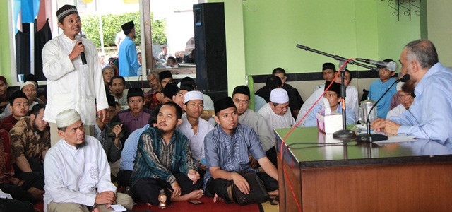 Cimanglid (www.hasmi.org) | Ahad pagi 24 Agustus 2014 , taujih yang disampaikan oleh pemateri Ustadz Abu Muhammad Abdul Karim Al-Katsiri, biidznillah mampu mengobarkan jiwa semangat juang dakwah ribuan peserta yang hadir dalam acara Liqo’ Syawal HASMI 1435H. Pasalnya, Narasumber menjelaskan dengan gamblang makna mendalam tema “Keluar dari Kegelapan”, ditambah mencakup juga pembahasan seputar tauhid, takwa & tawakkal, dakwah & realita, dan kisah juang dakwah para Nabi. Suasana hening penuh khusuk pun kian menyelimuti acara akbar HASMI yang bertempat di Masjid Ali bin Abi Tholib, komplek Studio Fajri 99.3Fm, Cimanglid-Tamansari Kabupaten Bogor.